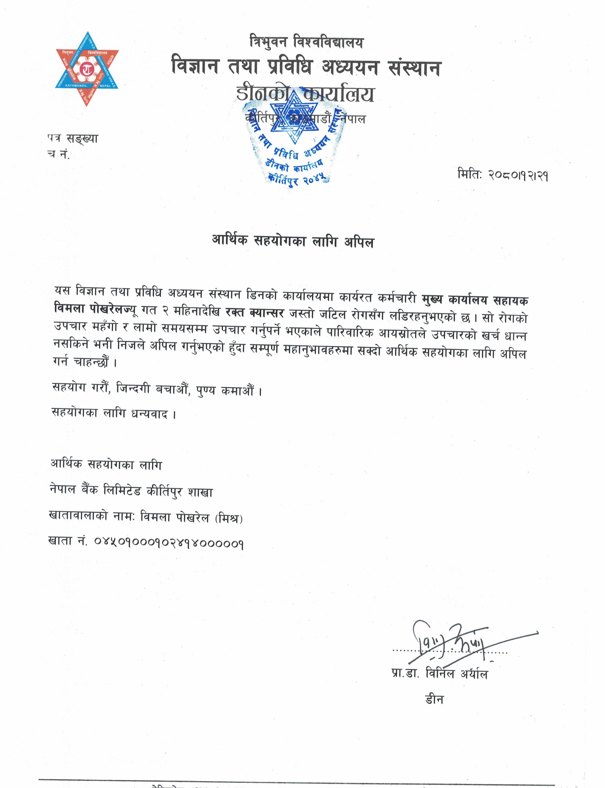 विज्ञान तथा प्रविधि अध्ययन संस्थानको सहायक डीन छनाेट समितिको सूचना