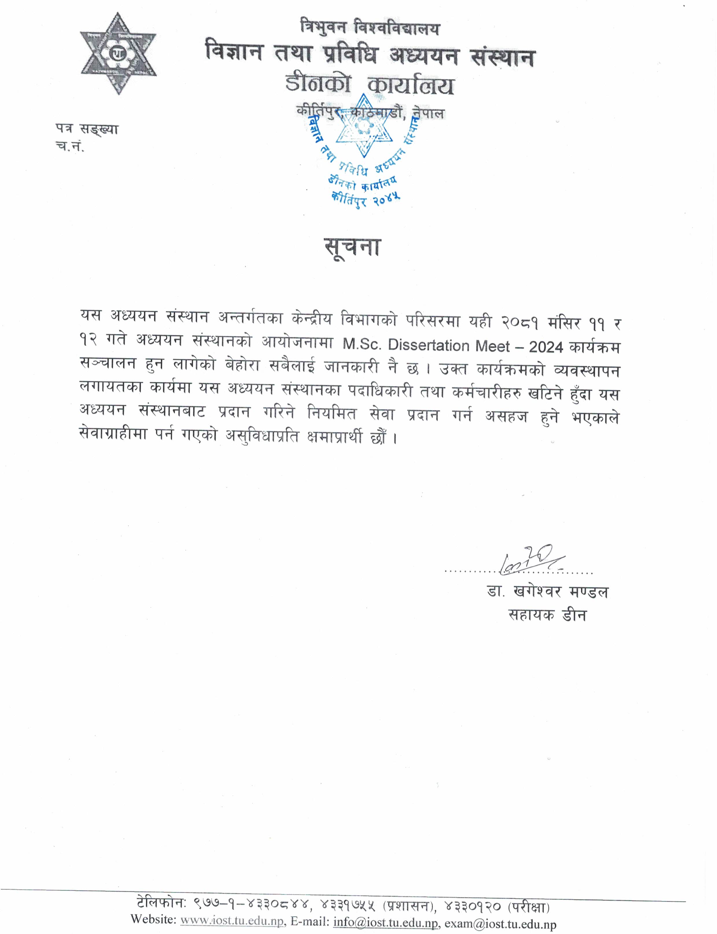 विज्ञान तथा प्रविधि अध्ययन संस्थानको सहायक डीन छनाेट समितिको सूचना
