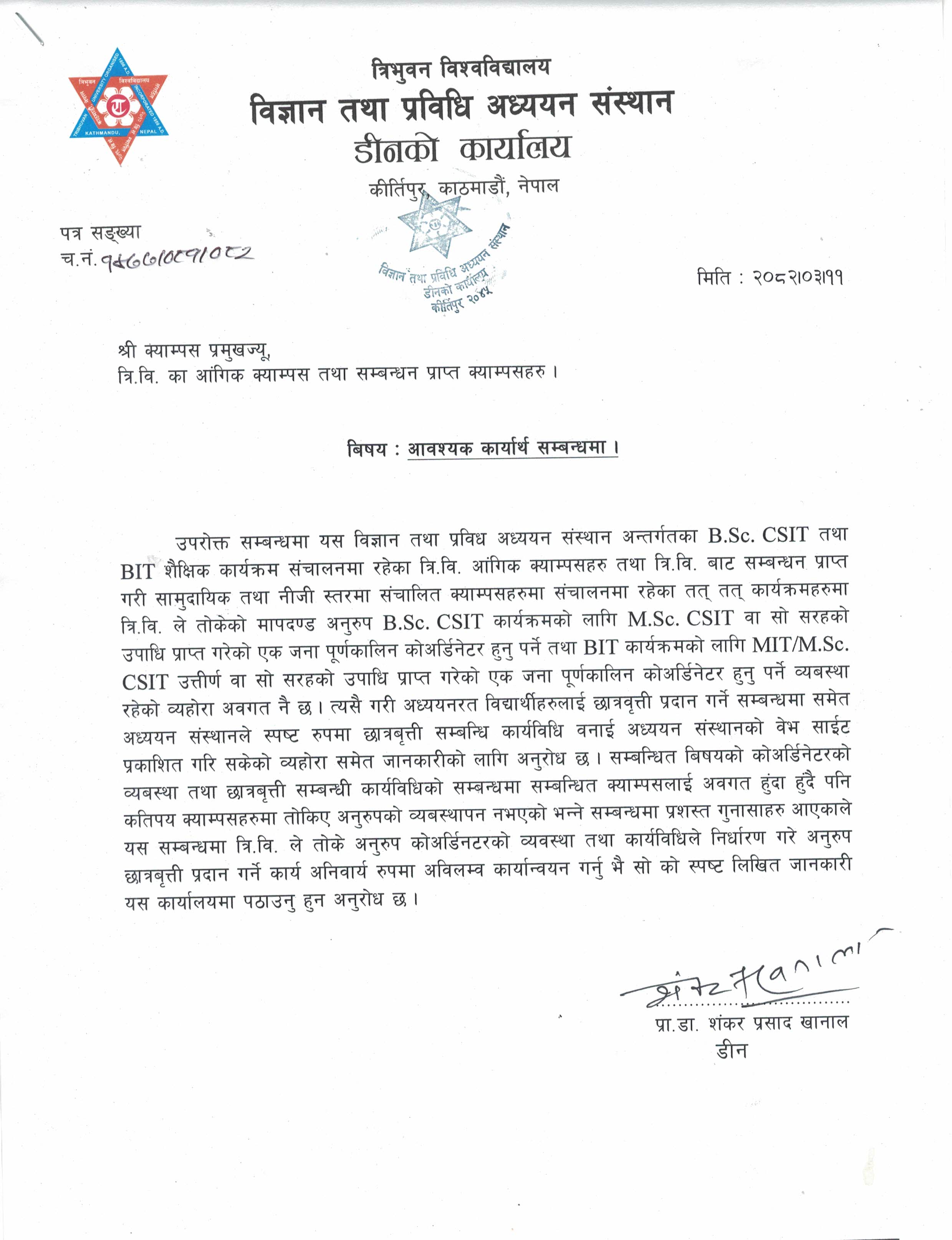 विज्ञान तथा प्रविधि अध्ययन संस्थानको सहायक डीन छनाेट समितिको सूचना