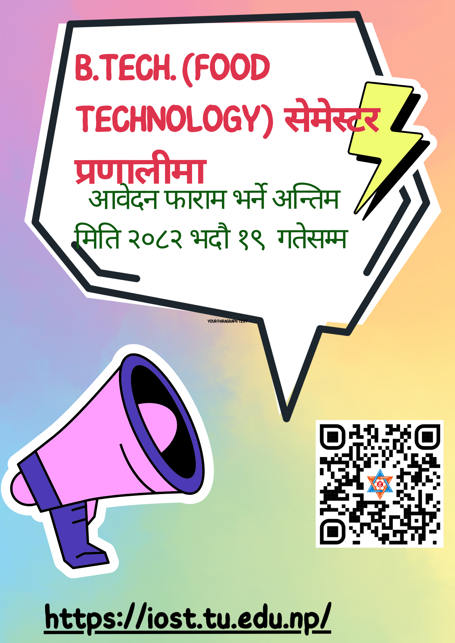 B.Tech. (Food Technology) कार्यक्रममा २०८२ सालकाे नयाँ विद्यार्थी भर्ना सम्बन्धी अत्यन्त जरुरी सूचना